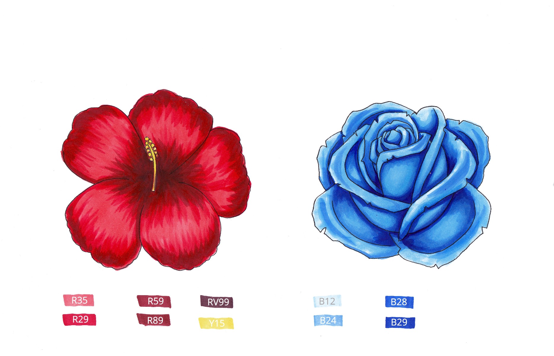Auch mit den Copic Markern gelingt die Arbeit auf dem Perfect Colouring Paper hervorragend. Die Farben wirken – wie es bei den meisten dickeren Papieren der Fall ist – ein wenig heller als auf dem Alkohol Marker Pad Papier. Dies liegt daran, dass die feinen Farbpigmente der Markertinte tiefer in die Fasern hineingesogen werden. Ein Vorteil dieser Eigenschaft ist, dass es sich sehr sauber arbeiten lässt und ein ungewolltes Ineinanderfließen der Farben verhindert wird.