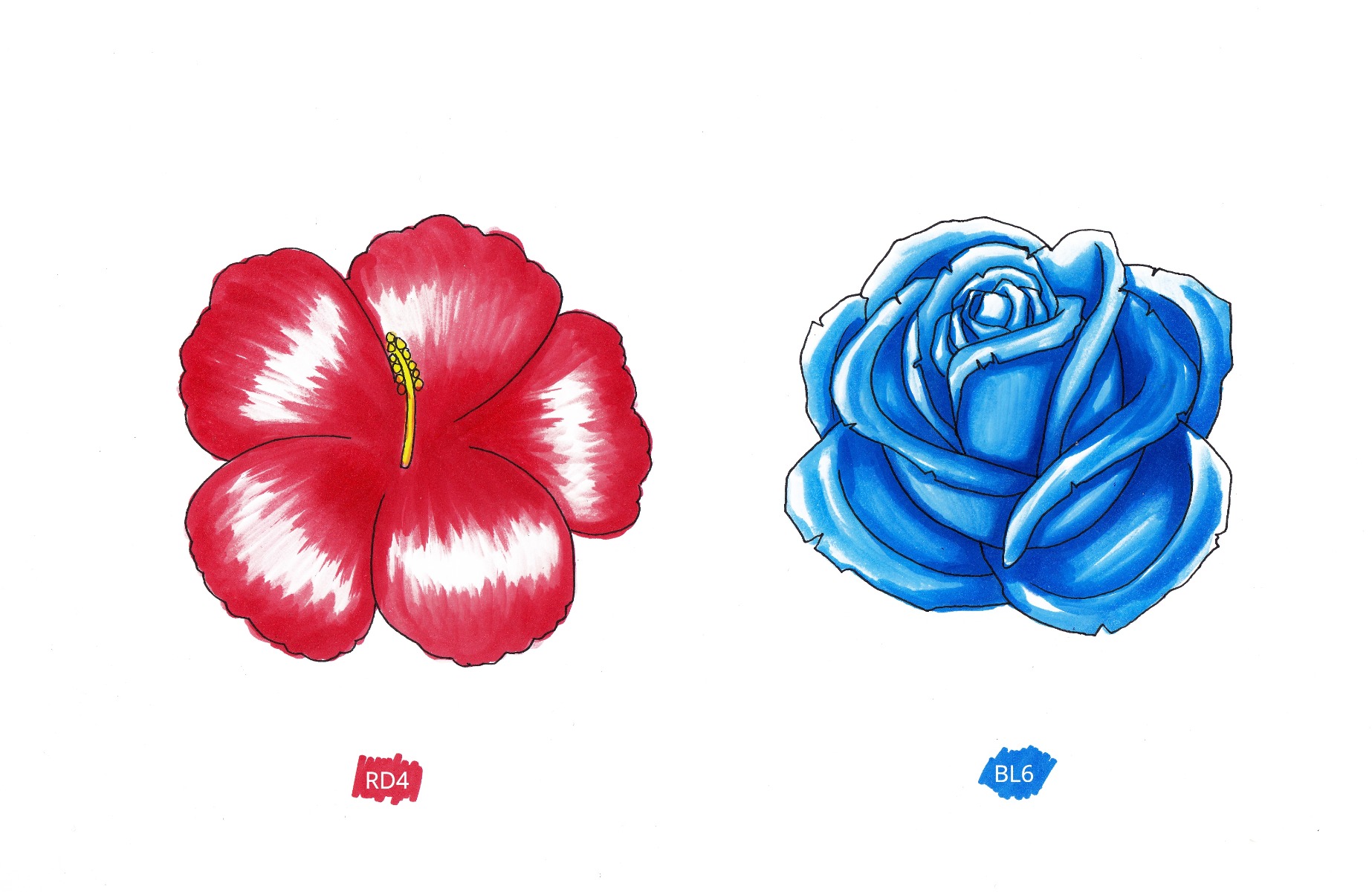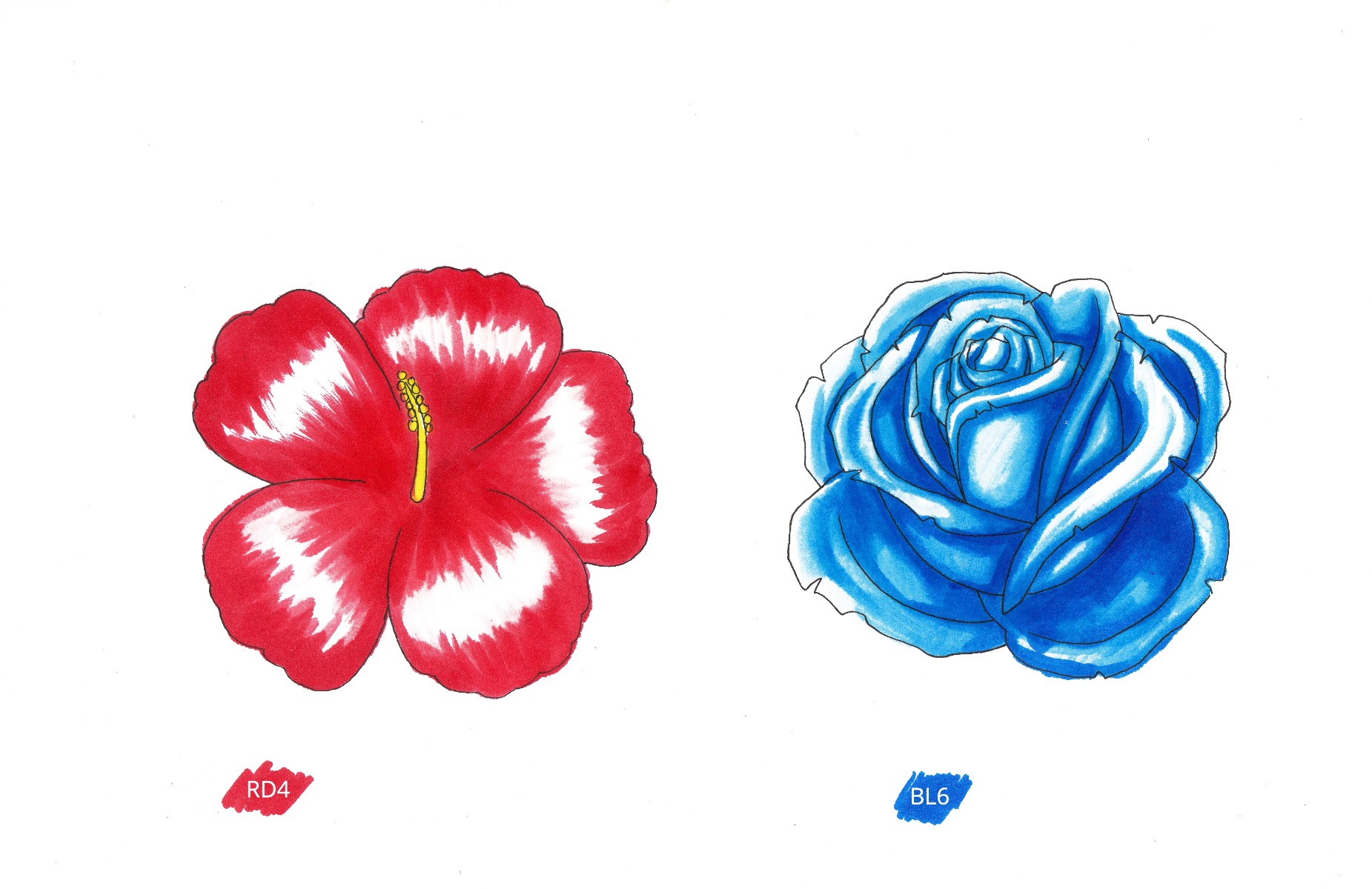 Bei der Coloration mit den Chameleon Pens wurde viel „nass-in-nass" gearbeitet. Umso erstaunlicher war hier das Resultat, dass die Rückseite des Alkohol Marker Pad Papiers trotz des großzügigen Farbauftrags unversehrt blieb. Im Gegensatz zu den Stylefile- und Copic Markern ähnelt die Wirkung der Tinte durch leichtes Ausfransen auf dem Blatt eher einer Coloration mit Aquarellfarben. Der Blender des Chameleon Pens braucht eine Weile um zu trocknen, sodass auch komplexe Verläufe und Farbgebungen in Ruhe ausgearbeitet werden können.