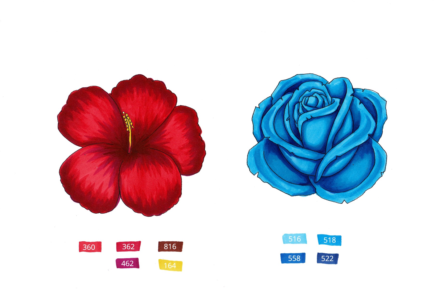 Das Ergebnis einer Coloration mit Copic Markern fällt gleichermaßen gut aus: Leuchtende Farben und reibungsloses Arbeiten. Auch hier gelangt bei üppigem Farbauftrag nichts auf das nächste Blatt hindurch.