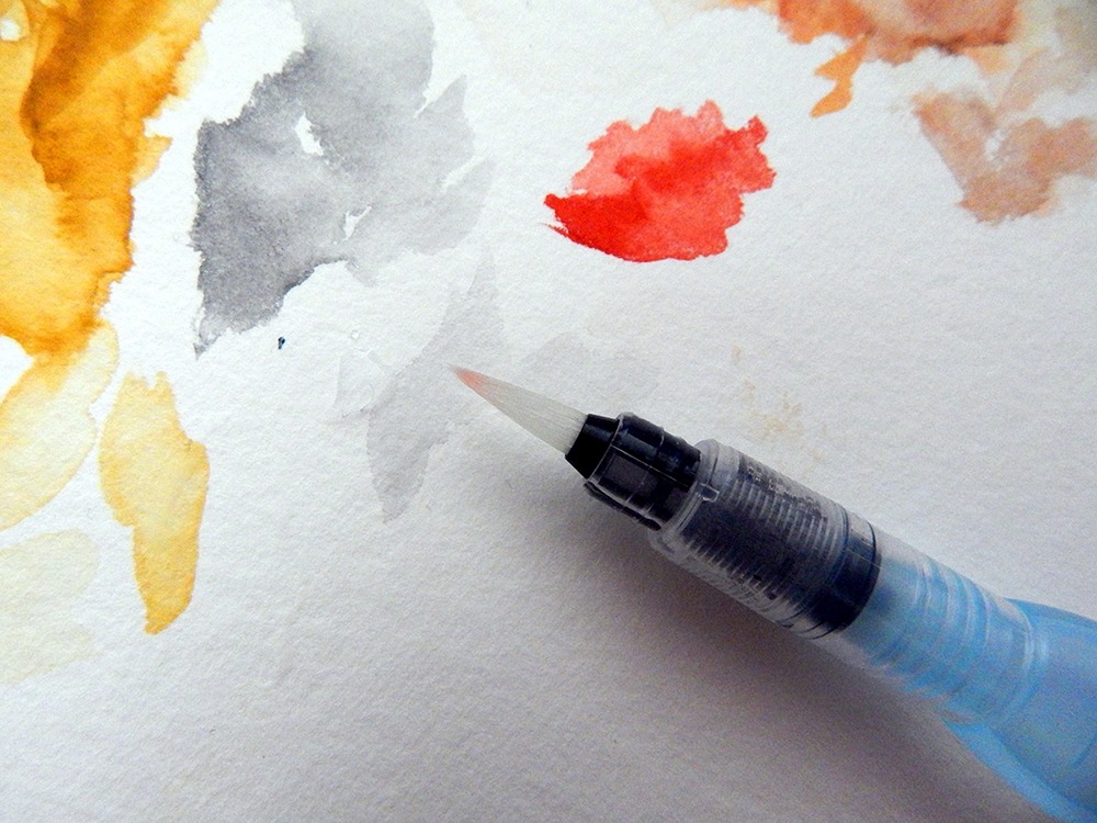 Für eine helle Grundierung nimmt man nur ein klein wenig Farbe auf, diese kann dann mit kontrolliertem Wasserfluss gleichmäßig auf das Papier aufgetragen werden. Hierzu muss nur ganz leicht auf den Tank gedrückt werden: mit leichtem Druck kommt nur wenig, mit viel Druck auf den Tank kommt eine große Menge Wasser durch die Spitze. Bevor Du mit einer richtigen Illustration auf teurem Aquarellpapier startest, solltest Du erst einmal auf einem Testpapier ein Gefühl für den Pinsel an sich und den Wasserfluss bekommen. Du solltest vorallem am Anfang lieber erst mit einer kleinen Wassermenge starten, bevor Du mit einer zu großen Wassermenge das Papier aufweichst oder andere Farben wieder zu stark anlöst.