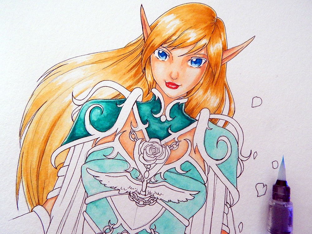 Du kannst jetzt auch problemlos mit dunklen oder kräftigen Farbtönen Akzente setzen, um Deiner Illustration so mehr Tiefe und detaillreichtum zu verleihen. Durch die verschiedenen Strichstärken der Wassertankpinsel-Modelle lassen sich so auch sehr kleine Details, wie auch größere Flächen einfach colorieren.
