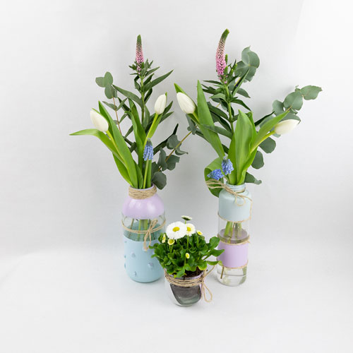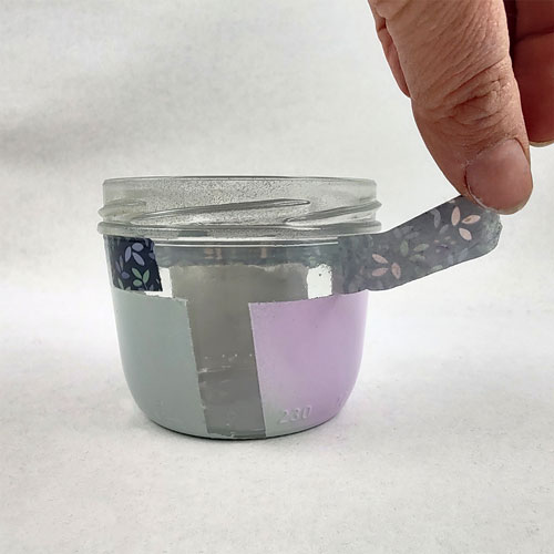 Flasche/Glas reinigen und nach Lust und Laune verschiedene Muster mit Tape abkleben.
