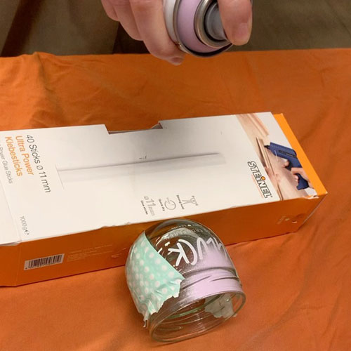 Vorsicht, nicht zu nah am Gegenstand sprühen, sonst kommt zu viel Farbe aus der Dose auf eine Stelle und es gibt unschöne "Nasen".