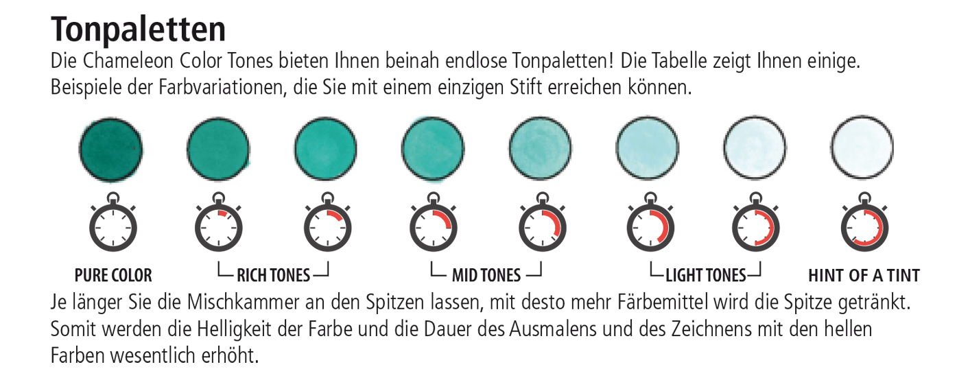 Als Einzelprodukt, aber auch als ideale Ergänzung zu anderen Markerherstellern liegt die Stärke der Chameleon Pens in der Erstellung besonders weicher Farbübergänge, 3D-Effekte, Hervorhebungen, Schattierungen und Schraffuren.