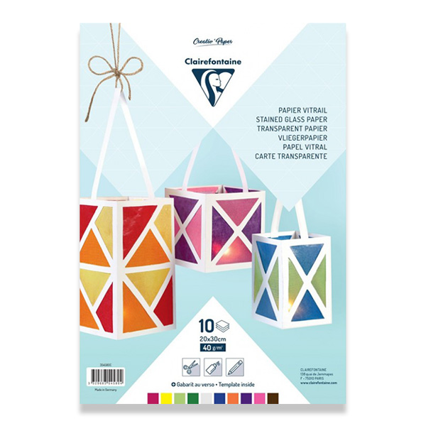 Das Vitrail-Papier eignet sich besonders gut für die Herstellung von Glasfenstern, Laternen, Windlichtern, Lampen usw. In der Packung sind 10 farbige Bögen Glasmalpapier im Format 20x30cm, 40g/m2 enthalten: rosa, gelb, hellgrün, dunkelgrün, grau, blau, orange, violett, fuchsia-pink, schwarz.