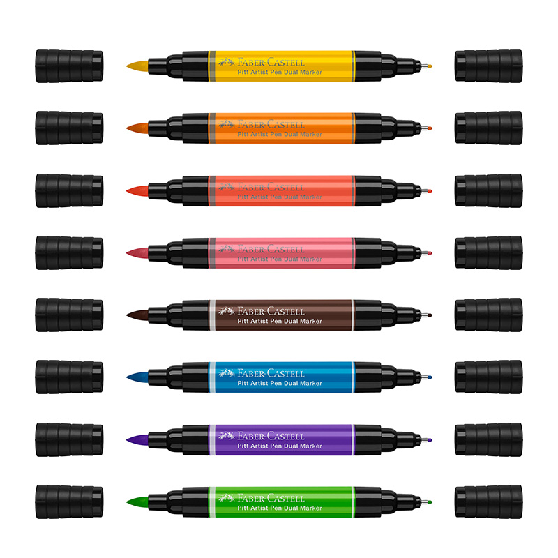 Die Pitt Artist Pen Dual Marker von Faber-Castell sind hoch pigmentierte Künstlertuschemarker mit zwei verschiedenen Spitzen.