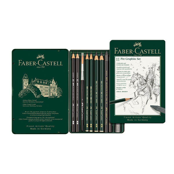 Das Pitt Graphite Sortiment bietet allen Kreativen eine reichhaltige Auswahl an Stiften und Kreiden in verschiedenen Härtegraden zum Skizzieren sowie zum grafischen und flächigen Arbeiten. Die 16 unterschiedlichen Härtegrade reichen vom zarten Grauton bis zum tiefen Grafitschwarz und bieten dem Künstler eine große Variationsmöglichkeit.