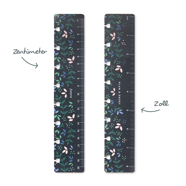 Bringen Sie etwas Flair in Ihre täglichen Notizen mit diesem schönen A5 Lineal aus der Garden Collection. Das Lineal ist mit den nachfüllbaren filofax Notizbüchern kompatibel. Perfekt, um kleine Objekte zu messen, gerade Linien zu zeichnen, Seiten zu markieren und vieles mehr.