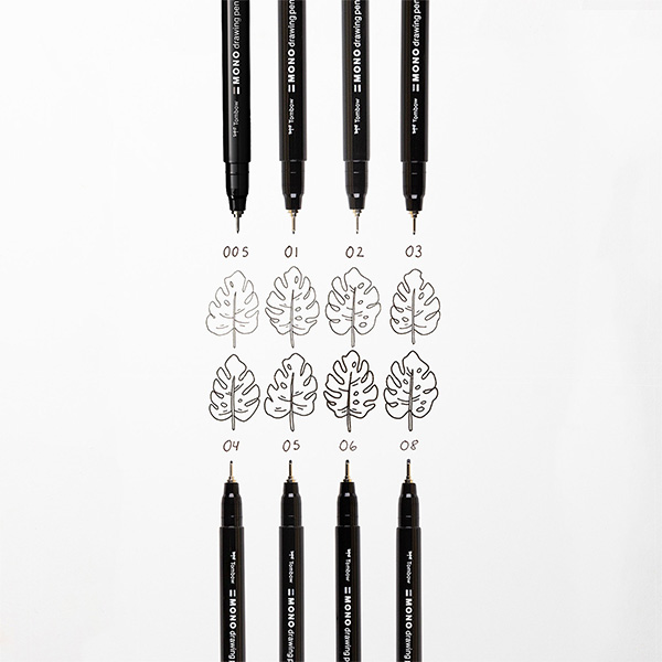Der Tombow Mono drawing Pen ist in acht verschiedenen Strichstärken erhältlich sowie als Set: