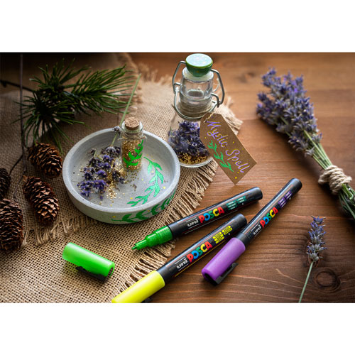 Das Posca PC3M Glitter Marker Set enthält 8 Acryl-Marker auf Wasserbasis. Die Stifte besitzen eine feine Rundspitze und sind ideal zum Zeichnen, Schreiben, Dekorieren, Kolorieren und Markieren geeignet. Permanent auf Holz, Textilien und Pappe. Die Farben sind deckend, opak, lichtbeständig und matt und lassen sich auf glatten Oberflächen, wie zum Beispiel Glas, abwischen.