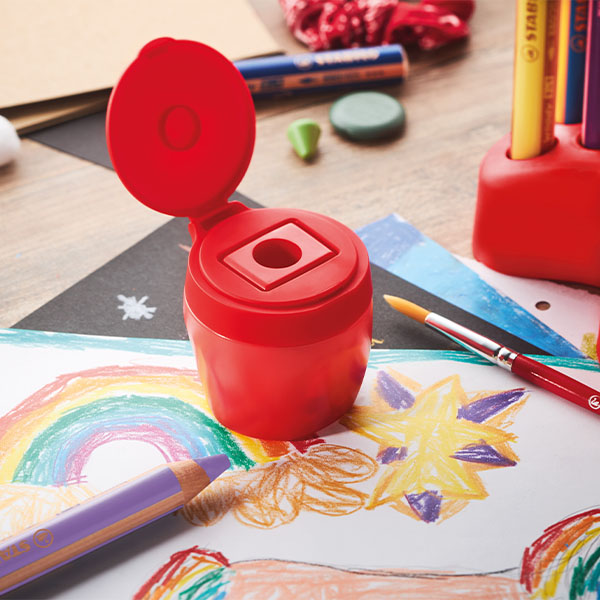 Der robuste STABILO woody 3 in 1 Dosenspitzer macht stumpfe, dicke Buntstifte im Handumdrehen wieder spitz. Sein Design ist nicht nur zeitlos, sondern auch so gestaltet, dass er in Hände jeder Größe passt. Mit dem kindersicheren Anspitzmodul ist der Dosenspitzer auch für Kinder absolut sicher zu benutzen. Der Behälter ist groß genug, um allen Spitzerabfall aufzufangen und der Deckel hält alles im Spitzer, damit kein feiner Staub auf dem Schreibtisch landet. Ein weiteres Highlight des Anspitzers ist das austauschbare Anspitzmodul, das einfach ausgetauscht werden kann, um eine lange Lebensdauer des Dosenspitzers zu gewährleisten.