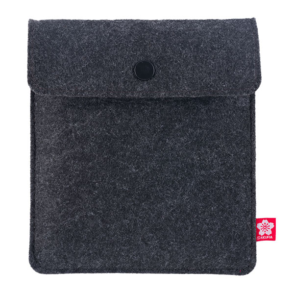 Das Etui aus Post-Consumer-Polyester ist langlebig und nachhaltig. Es ist dunkelgrau meliert und hat einen Druckknopf sowie ein schickes, eingenähtes Sakura-Label. Der perfekte Begleiter für Illustratoren im Arbeitsalltag! Dieses praktische Etui für Stifte ist so klein, dass es mühelos in der Jacken- oder Handtasche Platz findet, und ist damit ein großartiges Accessoire für Kunstschaffende, die viel unterwegs sind.
