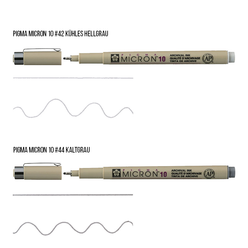 Der Pigma Micron 10 besitzt eine 0,6-mm-Spitze und ist in den Farben "Kühles Hellgrau" und "Kaltgrau" erhältlich.