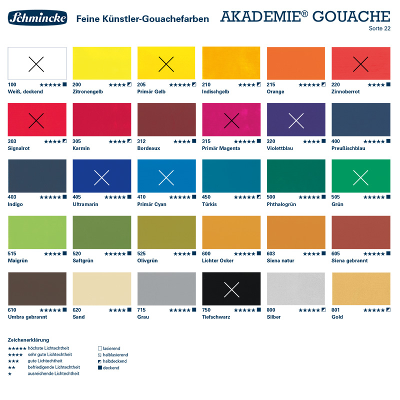 Das Schmincke Akademie Gouache Set besteht aus 10 x 60 ml Tuben feinster AKADEMIE Künstler-Gouache Farben.