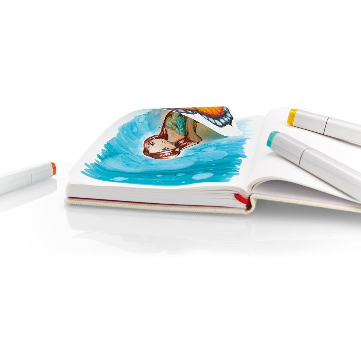 Das senseBook Layoutmarker-Sketchbook ist das Skizzenbuch, das deine Sinne berührt. Der Einband ist aus cremefarbenem Leinen, angenehm weich, warm & lebendig. Die 200 beidseitig nutzbaren Seiten sind die beste Grundlage für all deine Zeichnungen, die du aufs Papier bringen möchtest. Verschiedene Mal- und Zeichentechniken wie Layoutmarker, Aquarell, Wasserfarben etc. kommen hier bestmöglich zum Ausdruck. Die cremefarbenen blanko-Seiten fühlen sich samtweich an und haben eine glatte, satinierte Oberfläche wie gestrichen. Mit dem roten Klippband kannst du dein senseBook Layoutmarker-Sketchbook jederzeit sicher verschließen. So wird es zum liebevollen Begleiter auf all deinen Wegen, wo immer du deiner Kreativität freien Lauf lassen möchtest.