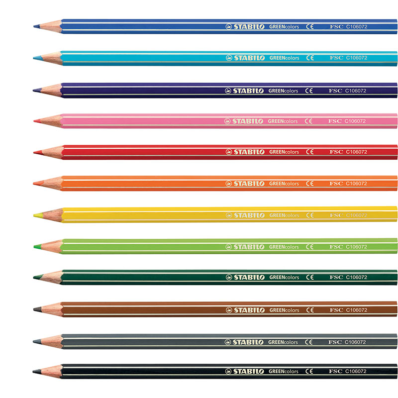 Die STABILO GREENcolors Buntstifte sind sechskantig und bestehen zu 100% aus FSC®- zertifiziertem Holz.