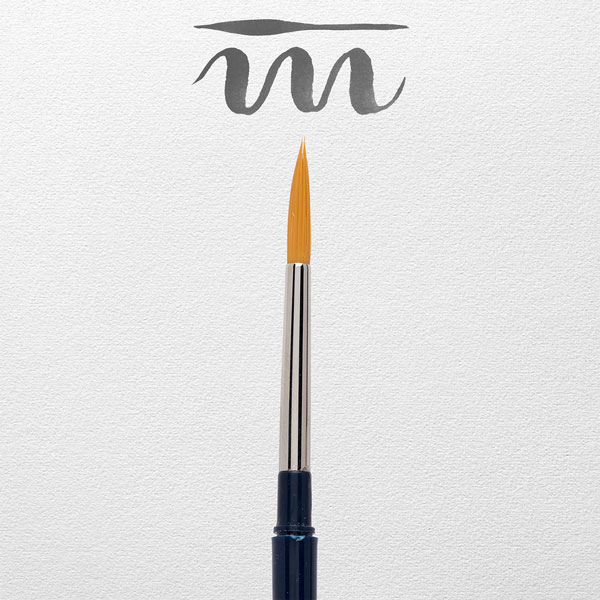 Das Kunsthaarbündel kann eine große Menge Wasser aufnehmen und hat eine runde Form mit einer sehr feinen Spitze für detailliertes Arbeiten.