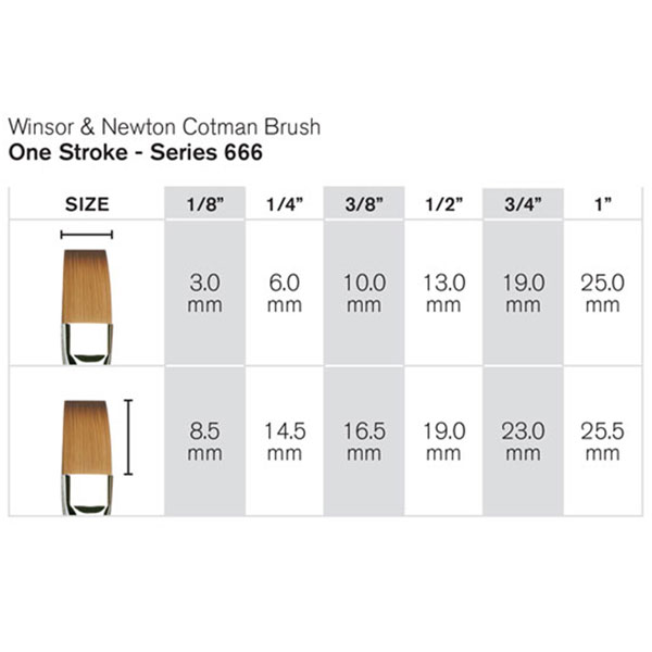 Der Ein-Strich-Pinsel, Serie 666 mit kurzem Stiel ist ein flacher Aquarellpinsel mit einem geraden Pinselkopf.