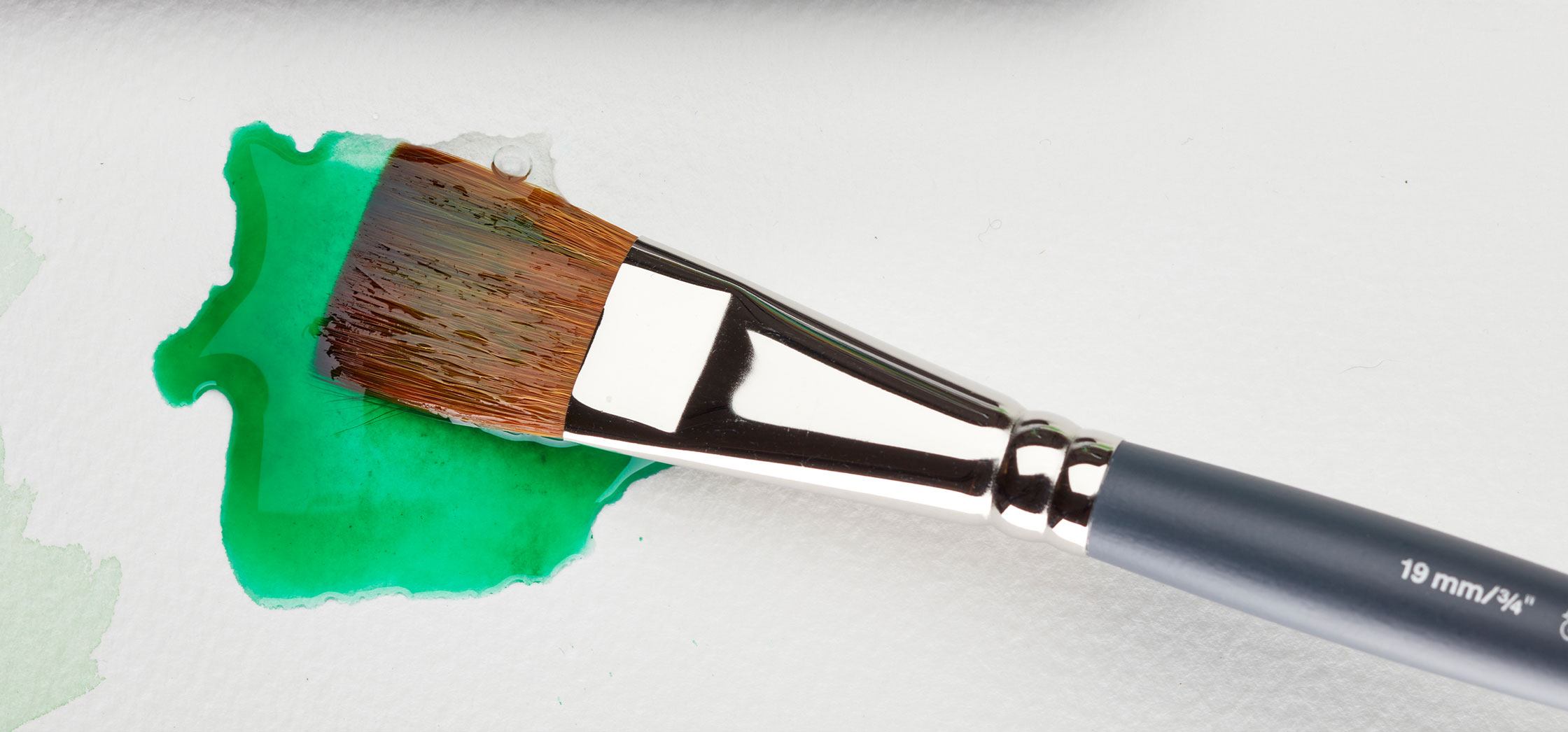 Ein kurzer Flachpinsel ideal für Kanten und Formen oder zum Auftragen von Waschungen.
